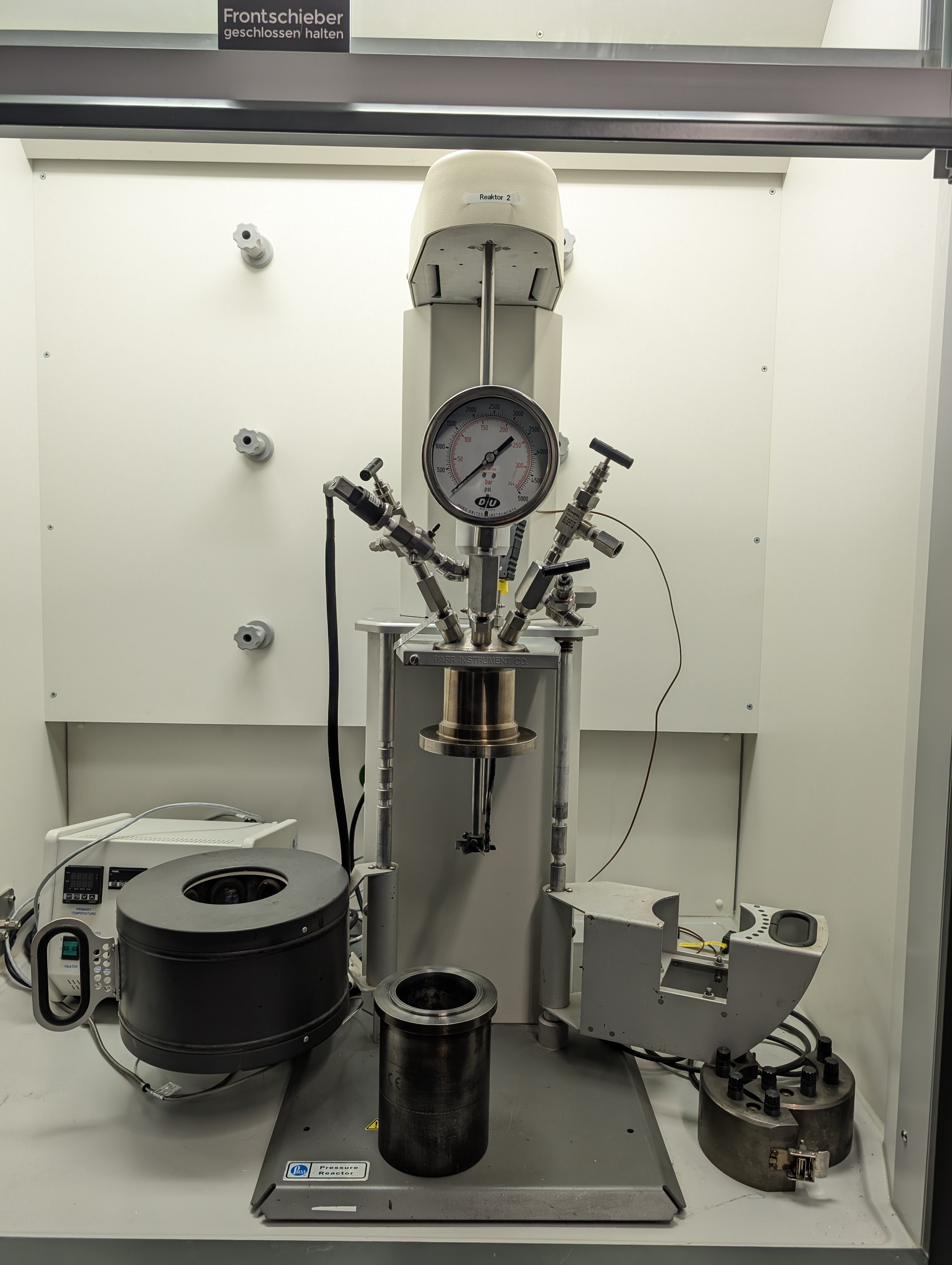 Der 600-ml-Hochdruckreaktor ermöglicht die kontrollierte Untersuchung von Flüssigphasenumwandlungen unter erhöhten Temperaturen und Gasdrücken von bis zu 350 °C respective 200 bar. Damit eignet er sich für die Depolymerisation von Lignin, die katalytische Hydrogenolyse und die lösungsmittelvermittelte Aufwertung von Biomasse. Die robuste Behälterkonstruktion ist für reaktive Gase wie H₂ oder O₂ ausgelegt, während die elektronische Steuerung der Heizung und Kühlung für stabile Reaktionsbedingungen sorgt. Die Zuführungen ermöglichen die schrittweise Zugabe von Reaktanten für kinetische oder mechanistische Untersuchungen. Dieses System bietet eine vielseitige Plattform für die Verwertung von Biomasse, homogene und heterogene Katalyse, Polymerabbau und umfassendere Prozessentwicklungsforschung.