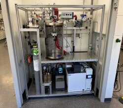 Die Reinigung erfolgt in einem Rührkesselreaktor durch oxidative Wäsche. Dabei werden die störenden Gasbestandteile in einer Flüssigkeit chemisch umgesetzt und dadurch entfernt. Um den Ablauf der Reaktion genau verfolgen zu können, ist der Reaktor mit in situ-Sensorik ausgestattet. Diese misst kontinuierlich Druck, Temperatur, pH-Wert, Redoxpotenzial sowie Leitfähigkeit und liefert somit wichtige Informationen über den Zustand der Reaktionslösung.