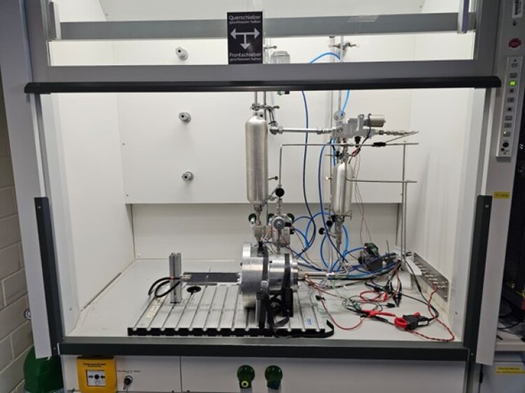 For the functional development of the control system for a prototype hydrogen direct injector, we have set up a component test bench for injectors at the CSC. The test bench can be operated variably with nitrogen, helium, or hydrogen. The control functions and test bench automation are controlled by a PROtroniC Topline. In order to detect the injector's reactions to the control signals, both the current and voltage across the injector as well as the needle stroke and speed are measured in high resolution and fully automatically (for more information click here).
