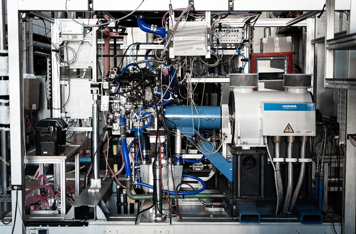 Für die Durchführung von Funktionsentwicklung und Optimierung der Betriebsstrategien steht unserer Arbeitsgruppe ein vollautomatisierter Leistungsprüfstand mit einem Vierzylinder Ottomotor mit Benzindirekteinspritzung zur Verfügung. Dieser kann variabel mit einem Abgasturbolader oder einem neuartigen elektrischen Aufladesystem ausgestattet (Forschungsprojekte HDTG, HSHT) werden.